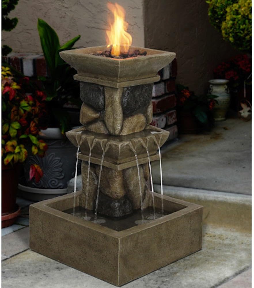 FREE Shipping by Amazon. Self-contained water features and fire fountains have been gaining in popularity in recent years. Backyard water features can add a serene and organic look to any home. Instead of using the water they apply the fire to express the beauty of fountain.