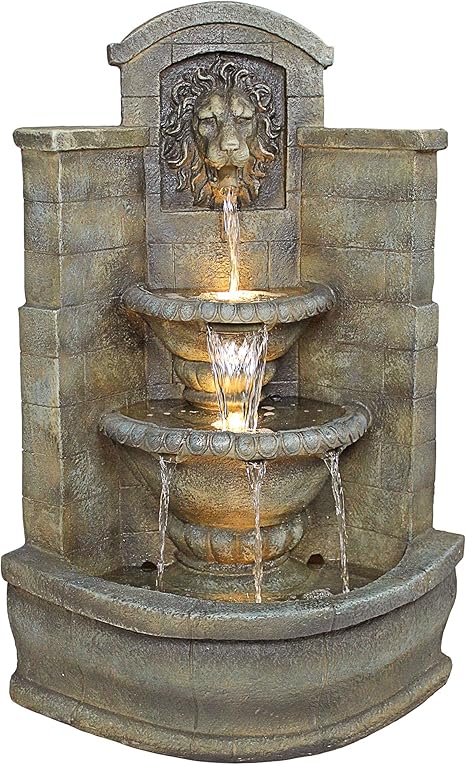 Corner Outdoor Fountains One of the best and most original ideas for spicing up an outdoor living area is with a corner water fountain. With over 40 available colors and finishes to choose from including marble charcoal classic white vintage stone silver dove and so many more you will be able to find the feature that best goes with your current design aesthetic. It is a lion corner fountain that is hand painted and is a fantastic addition to your garden yard and patio. Spring is attracting to a nearby and summer is just about here.