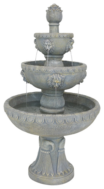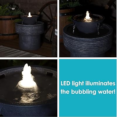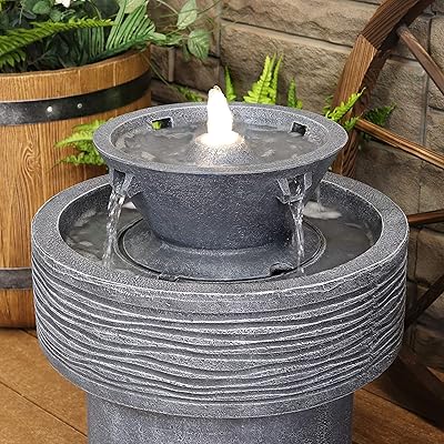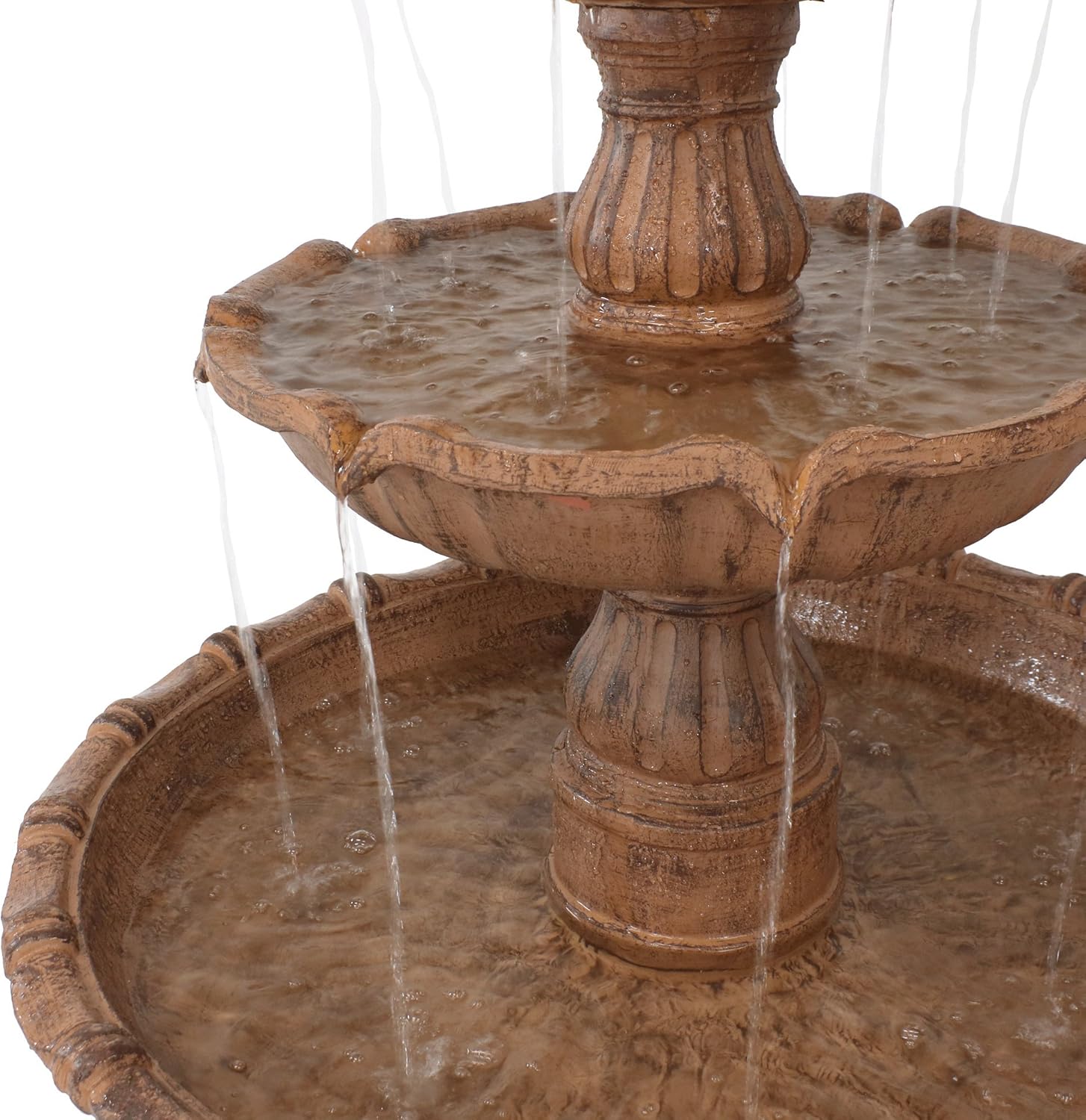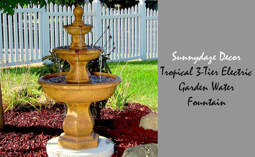 Sunnydaze Flower Blossom 3 Tier Electric Water Fountain Black 43 Inch Tall. Large Tiered Ball Outdoor Fountain. The Sunnydaze Large Tiered Ball Outdoor Fountain brings a stunning regal touch to your home and garden. Sunnydaze Large Tiered Fountain Protective Cover - 76 x 61 Diameter - Gray. All Sunnydaze Decor Fountains can be shipped to you at home. The first model features a natural-looking carved tree trunk with three tiers with LED lights for creating a relaxing atmosphere by mixing the glowing lights with gentle waterfall sounds.