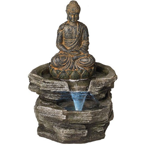 John Timberland Asian Zen Buddha Outdoor Water Fountain with Light LED 33 12 High Meditating for Yard Garden Patio Deck Home. Standing at 39 in height and 75 in width this garden fountain is perfect for creating a tranquil and zen outdoor. These elegant buddha outdoor water fountain are handmade skillfully crafted and perfect for elevated garden decorations. A Target Plus partner.