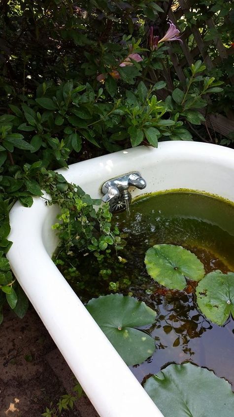 It was my birthday present this year. I have wanted it to be a pond for several years. It has been in my yard since they passed away many years ago. It was my great grandparents clawfoot bath tub. Used at spas and luxury hotels around the world you can create this relaxing outdoor soak in the comfort of your own backyard.