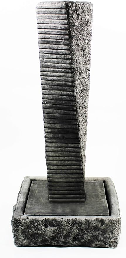 Rated 46 out of 5 stars. 4975H x 40W x 28D. Our Fleur de Lis Fountain is made of solid concrete and comes in three separate pieces. The water cascading creates a relaxing haven where you and your gues.