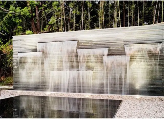 The water creates a tranquil flowing sound as water spills from the spout from the center of the fountain and into the bowl and then basin below. Aquarius Fountain Large 124500. This modern outdoor water wall fountain is 335 inches long 4 inches wide and 24 inches tall. A water wall with a mirror base looks fantastic and it seems that theres much more water flowing.