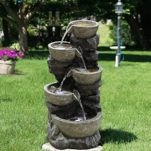 Naturefalls 5-Tier Outdoor Water Fountains with LED Lights - 39H Floor Standing Indoor Water Fountains for Garden Patio Deck Porch - Yard Art Decor Grey 39H inches 50 out of 5 stars 3 21999 219. The first model is a round-shaped solar fountain that includes a water pump a battery backup and 6 bright LED lights. Book Top Tours on Viator. It comes with all the necessary hardware plus a pump for easy installation.