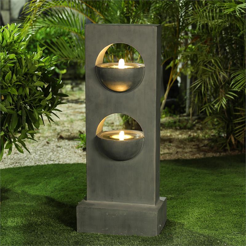 Luxen home fountain. Luxen Home Stone Finish Rectangular Pedestal Outdoor Patio Fountain with LED Light 19999. The water cascades into the basin below. The fountain features two rectangular columns with the larger one flowng water to the smaller rectangular column that rains the water to its base. Up to 50 off Our Exclusive Home Collections.