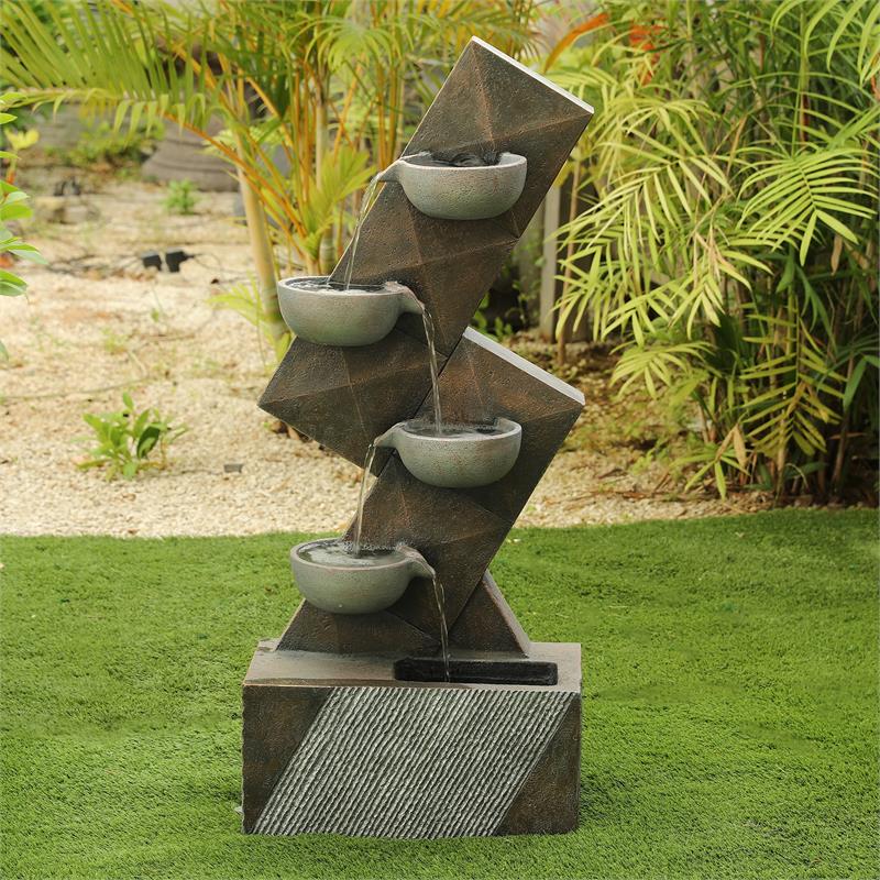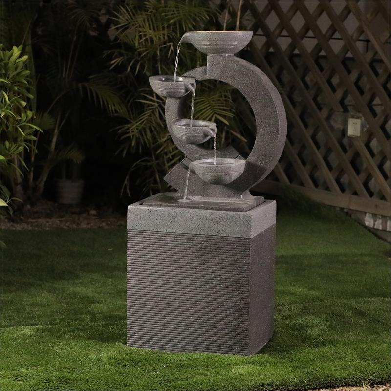All of these details will make a warm addition to your outdoor living space. Polyresin Peacock Outdoor Fountain with LED Light Item. Our Service Product Condition and Warranty. Product Title Luxen Home Resin Modern Semi-Round Patio Fountain with LED Light Average Rating.