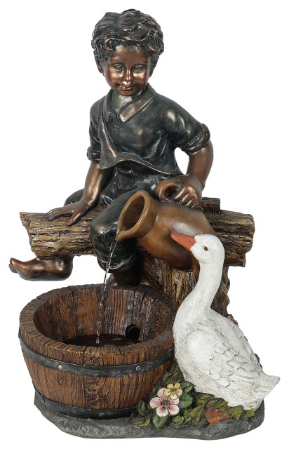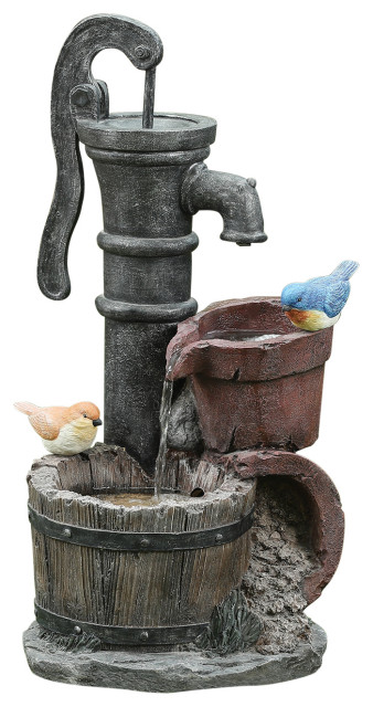 Luxen home polyresin peacock outdoor fountain with led light. Made of sturdy polyresin this fountain is perfect for outdoors. This beautiful outdoor fountain features a dazzling blue peacock with lovely detailed tail feathers and LED lights in the resorvoir base. Pot Polyresin Fountain with LED Lights This beautiful outdoor fountain features a dazzling blue peacock with lovely detailed tail feathers and LED lights in the reservoir base All of these details will make a warm addition to your outdoor living space Made of sturdy polyresin this fountain is perfect for outdoors The fountain can be placed anywhere in a. The Luxen Home Polyresin Peacock Patio Fountain with LED Light by Luxen Home is brand new.