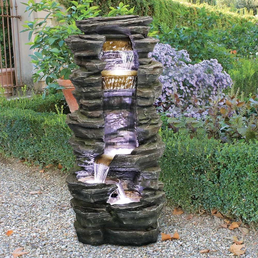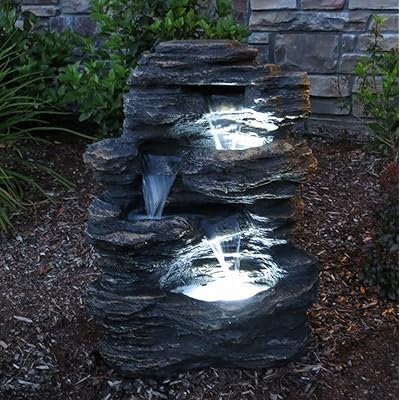 Sunnydaze Rock Falls Outdoor Waterfall Fountain with LED Lights 24 Inch Tall by Sunnydaze Decor. It has a rating of 44 with 67 reviews. Alpine Corporation 33 in. Both the pump and the lights power on though the pump is a little noisy. The Sunnydaze Layered Rock Waterfall Fountain with LED Light brings a bold beautiful accent to your outdoor area.