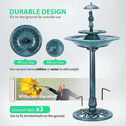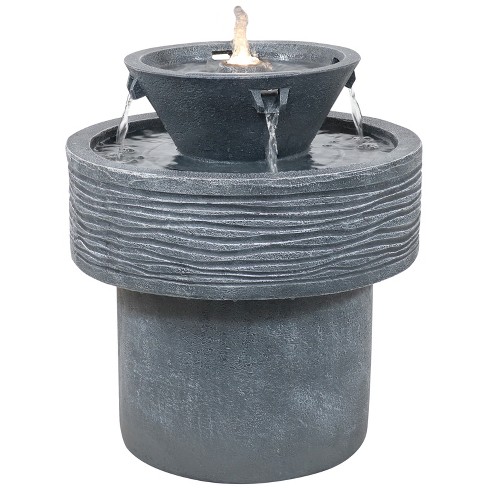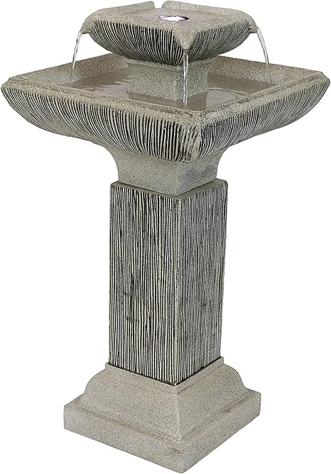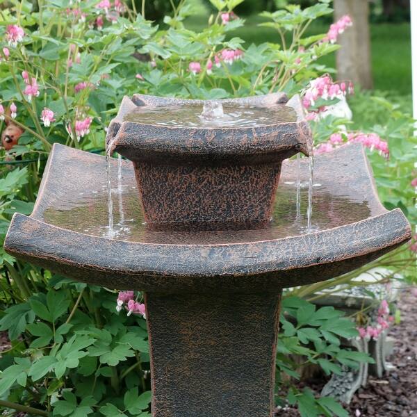 The second model is a 3-tier fountain constructed from a. Tiered Bird Bath Water Fountain with Light. This pretty fountain is just over 27 inches tall and it features a two-tier bath where water flows from the top level to the bottom. Fountain Garden Stone Finish with Electric Submersible Pump 46 Inch Tall.