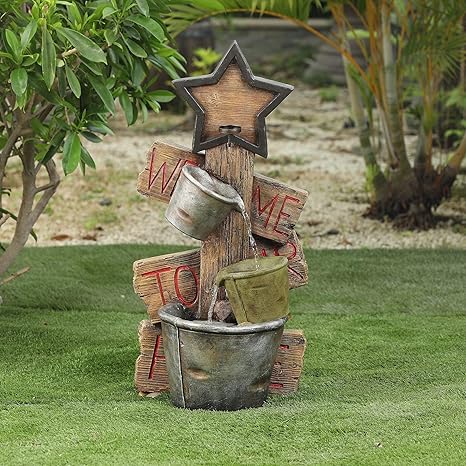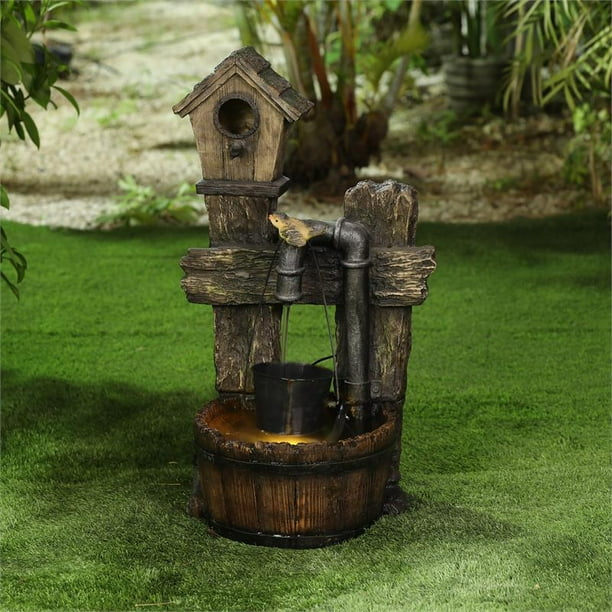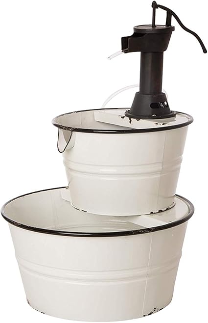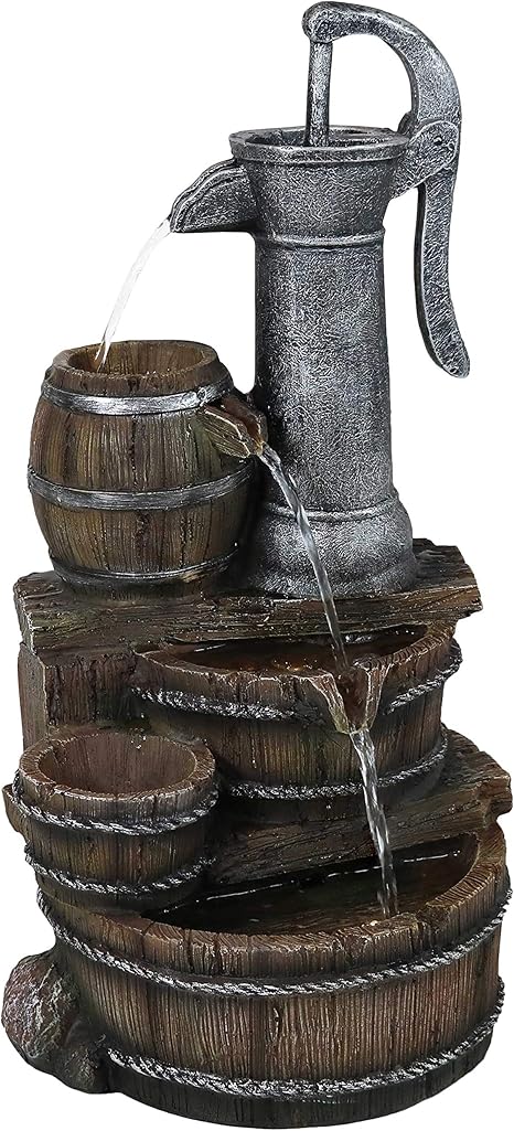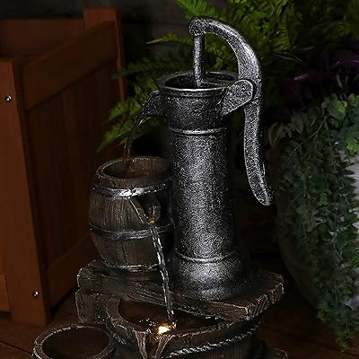 This item Sunnydaze Cozy Farmhouse Pump and Barrels Outdoor Fountain with LED Lights - Exterior Standing Water Feature - Corded Electric - Ideal for Deck Yard Balcony and Landscaping - 23-Inch. This is a lovely little fountain. Alpine Pump and Barrel Tiered IndoorOutdoor Fountain. Folk Art Duck Water Fountain.