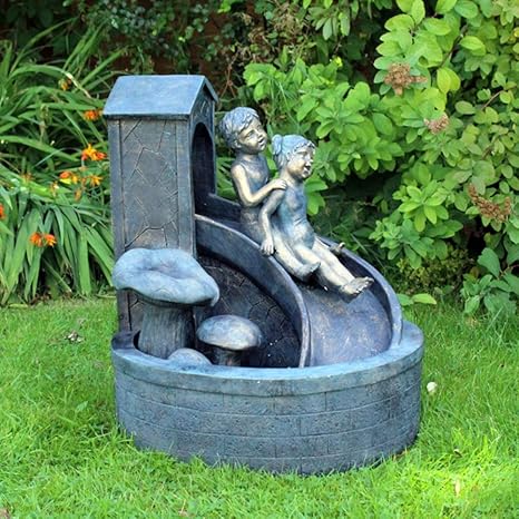 Sunnydaze Stacked Slate Outdoor Water Fountain. Free Shipping on Qualified Orders. This outdoor cascading fountain features two kids watering a collection of flowers a stylish and soothing addition to your porch backyard or lawn. Heres a water fountain the kids will love. Alpine 4-Tier Rock Water Fountain with LED Lights.