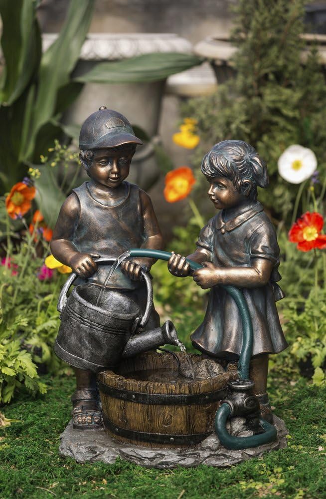 Two Kids Outdoor Indoor Water Fountain Indoor Water Fountains Garden Water Fountains Fountains Outdoor. This classic look of this outdoor fountain will bring a touch. Incredible detail from the girls bow to the boys over-alls. Constructed from lightweight resin with a natural look and realistic textures the fountain is weatherproof rust-resistant and resilient. The durable build and detailed design of the children outdoor water fountain will bring you attractive appeal for many years.