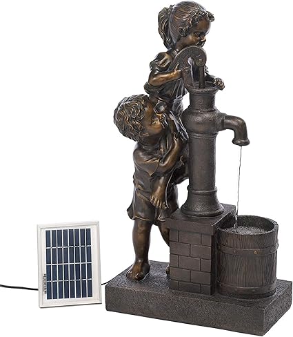 John Timberland Verona 35 High Rustic Brick Garden Fountain. Plus no complicated plumbing is required. The patio fountain features a boy and girl sitting on a tree branch atop a rock wall. This outdoor cascading fountain features two kids watering a collection of flowers a stylish and soothing addition to your porch backyard or lawn.