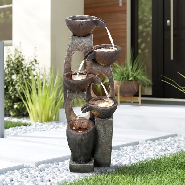 190003-Floor-Standing Fountains - 39 12 5-tiered Cylindrical Cascading Water Fountain with LED Lights for House Garden Patio Yard Decor Water Fountains Outdoor Features VisionAudition Relax 11500 33900. 99 2000 coupon applied at checkout Save 2000 with coupon. Get 5 in rewards with Club O. Alpine Mirror Silver with Decorative Stones Lighted Waterfall Outdoor Fountain.
