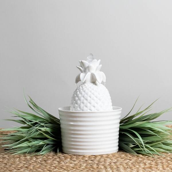 Add a charming focal point and the soothing sounds of flowing water to your outdoor space with the Sunnydaze Two-Tier Pineapple Fountain. The Pineapple Fountain commands attention in any outdoor setting. Water flows from the top pineapple into the central basin which fills and. Boasting the Southern symbol of hospitality this solar-on-demand water fountain is made of stone-gray polyresin and fiberglass and features a pineapple topper and two stacked basins.