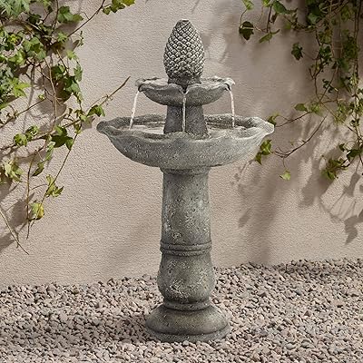 This polyresin garden fountain will be an eye catcher conversation piece in your formal natural or patio garden. This 46 tall tiered pineapple fountain features the convenience of solar with a battery backup technology for a winning combination of modern technology meets classic decor. Williamsburg Pineapple 2 Tier Garden Water Fountain Specifications. Alpine Corporation 4-Tier Rock Water Fountain with LED Lights - Outdoor Water Fountain for Garden Patio Deck Porch - Yard Art Decor 46 out of 5 stars 1784 28168 281. Entice the birds to bathe and frolic in your garden while you enjoy the peaceful sound of flowing water.