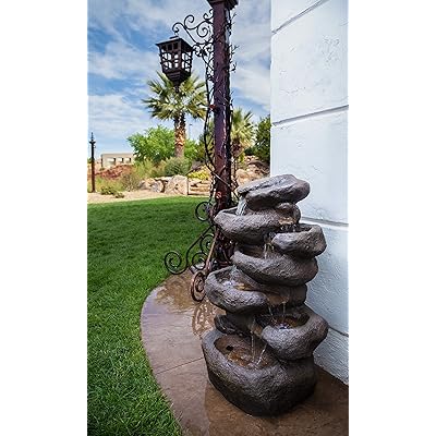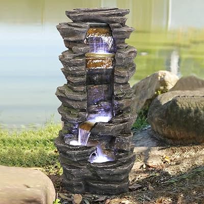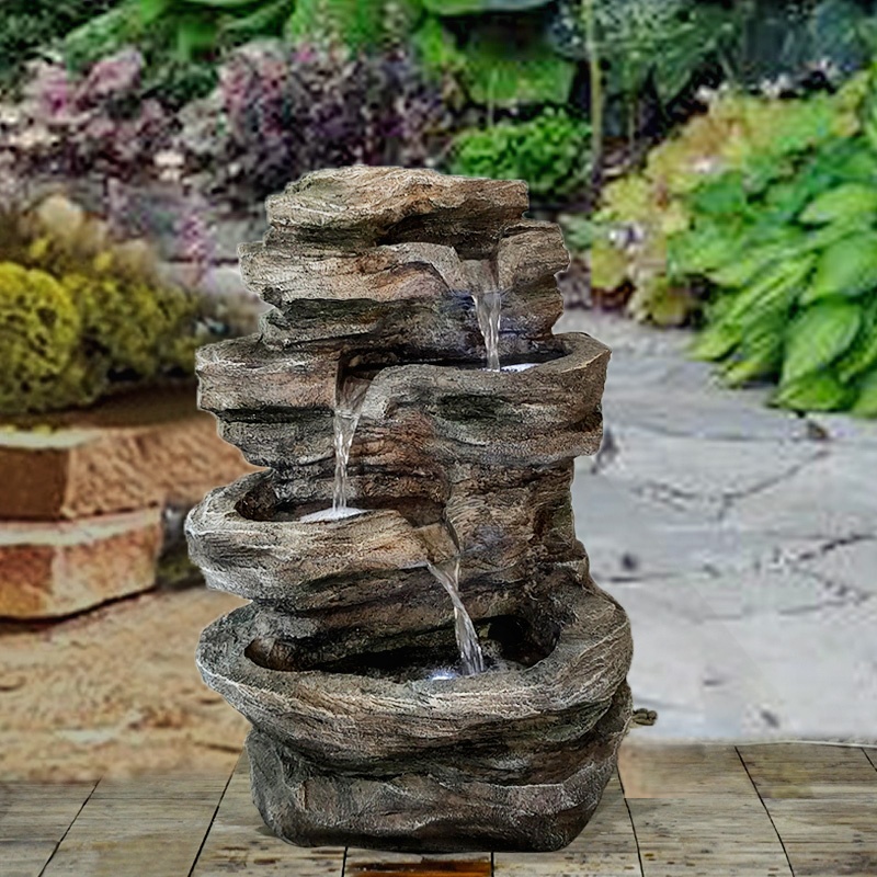 Browse our lawn garden decor selections and save today. Which brand has the largest assortment of Resin Fountains at The Home Depot. Hamiedun 40H 4-Tier Outdoor Garden Water Fountain Decor Resin Fountain for Garden Floor Patio Deck Porch Backyard and Home Art Decor Dark Gray. The large resin outdoor fountain also features LED lights that illuminate the waterfall and create a nice ambient during the dark.