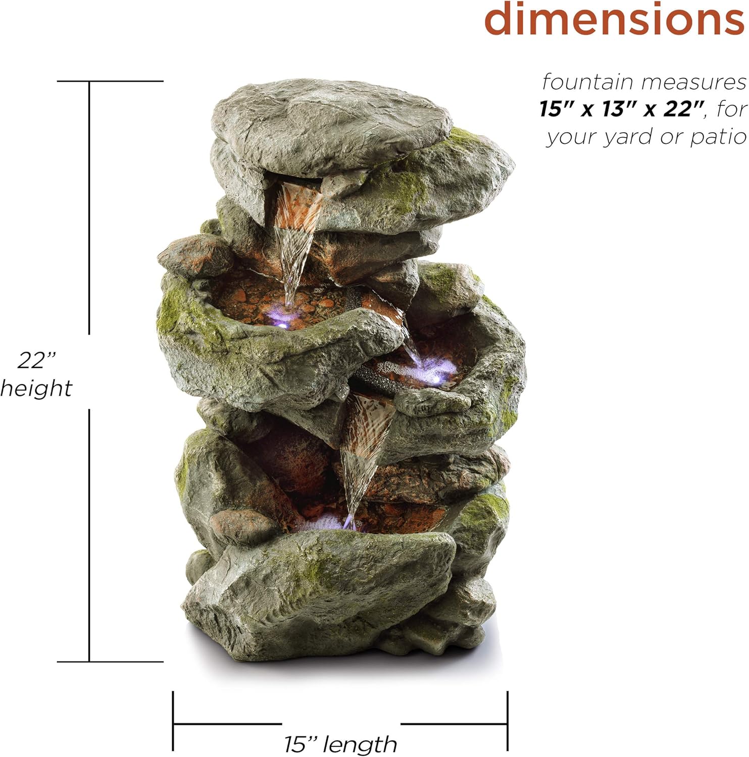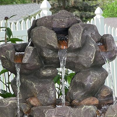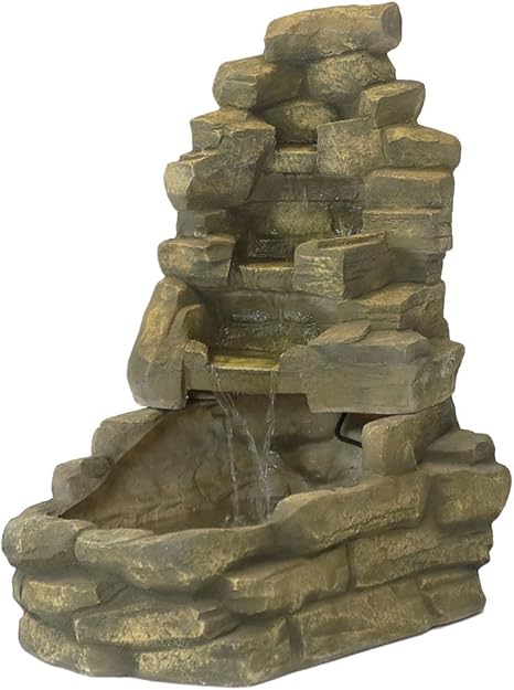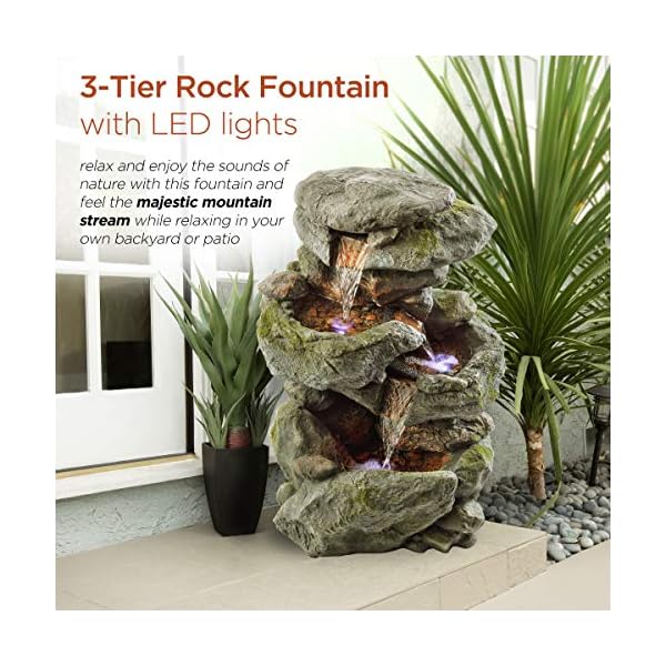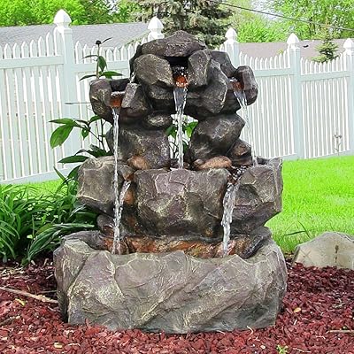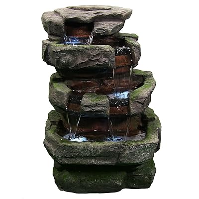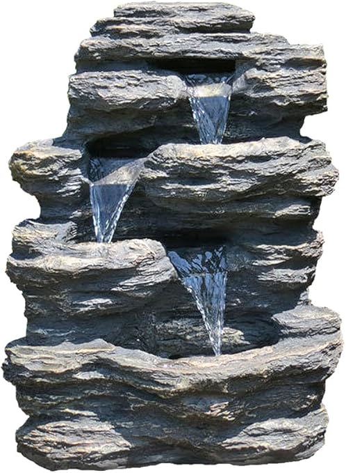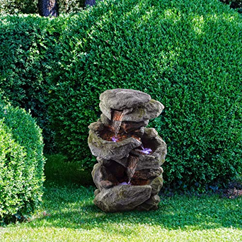 Sunnydaze Layered Rock Waterfall Outdoor Fountain with LED Lights 32 Inch Tall by Sunnydaze Decor. See more ideas about water features water features in the garden water garden. It is such a simple rock fountain to decorate your patio. This outdoor rock fountain creates glowing waterfalls to help you relax in your home while bringing in a piece of the wilderness and its atmosphere by mimicking real waterfall sounds.