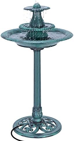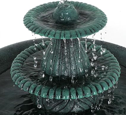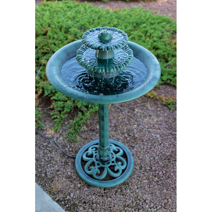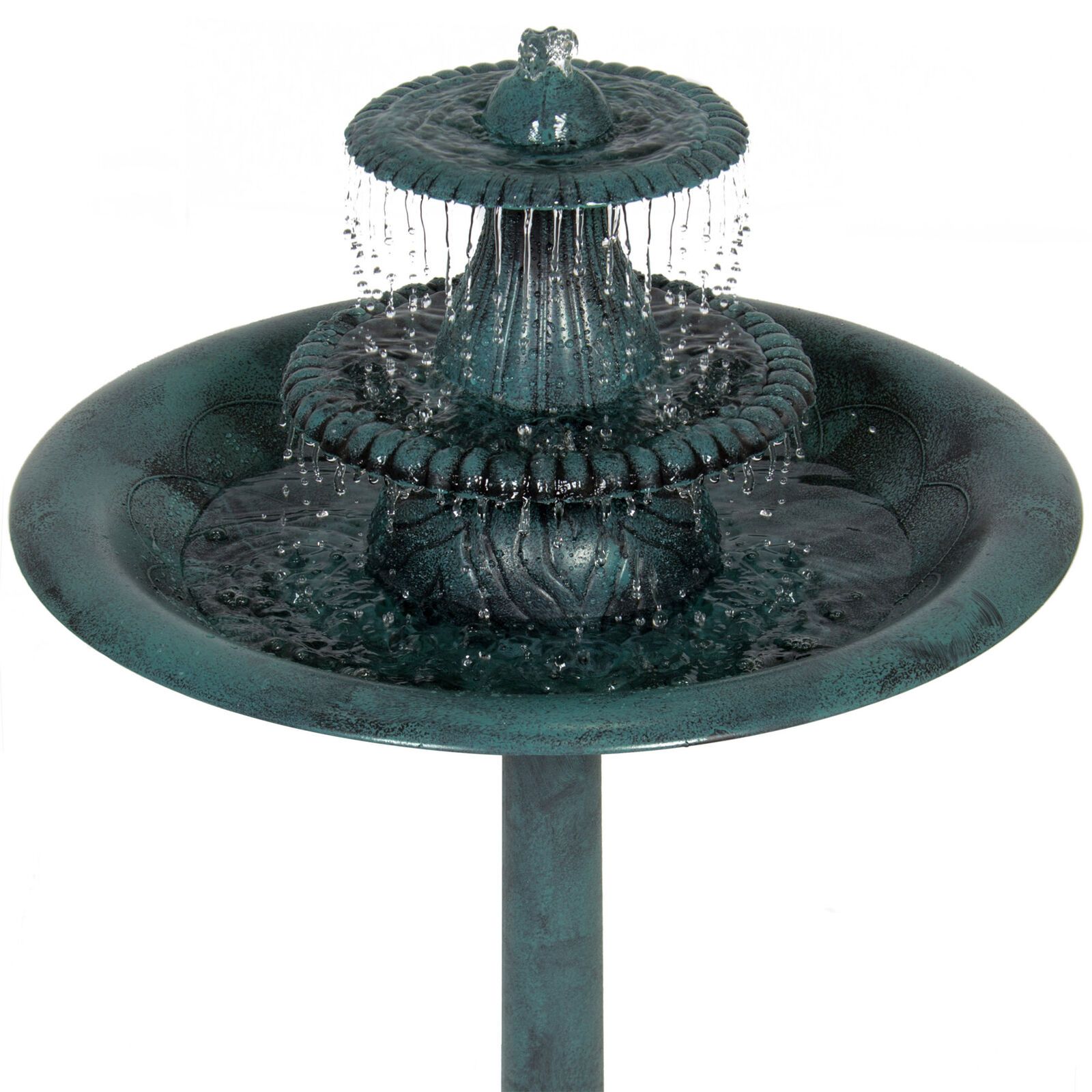 This solar-powered birdbath bubbler features a black round-shaped solar panel with a built-in water pump and attachments for creating 8 types of fountain spray patterns. Features a durable Polyresin construction with an antique Verdigris finish Includes a built-in pump that uses a self-contained system to recirculate water Rust- and fade-resistant properties make. This is our brand new 3-tier bird bath fountain with durable construction and its antique verdigris finish will give a deep impression. This 3-Tier Bird Bath Fountain is just the right size to fit in any garden or large greenhouse. Fill the bath with fresh shallow water and enjoy watching all the birds congregate near your patio garden deck yard or pool.