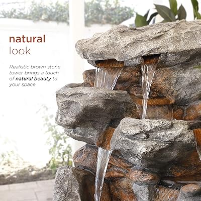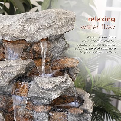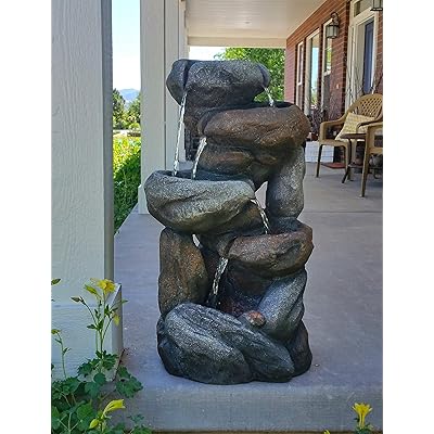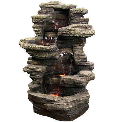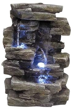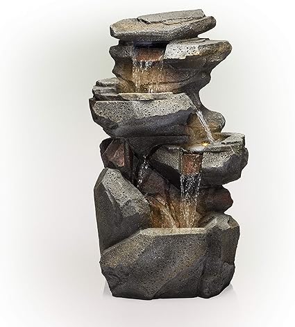 The three LED lights in the fountain tiers accent the movement of the trickling water for a subtle yet beautiful light source day or night. Alpine Corporation 22 4-Tiered Rock Waterfall Fountain With LED Lights - Space Gray. Alpine Corporation Outdoor 3-Tier Rock Water Fountain with LED Lights. Long life span 50000 hours.