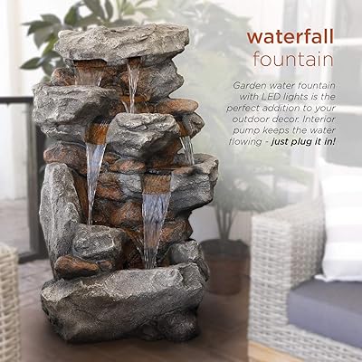 Alpine stacked rock waterfall outdoor fountain with led lights. Rock Locking 5 Tier Cascading Outdoor Fountain with LED. Garden water fountain with Drove lights and an inside guide to keep water streaming is the ideal choice to your outside décor. Get user reviews on all Outdoor products. Outdoor Waterfall for Garden Patio Deck Porch.