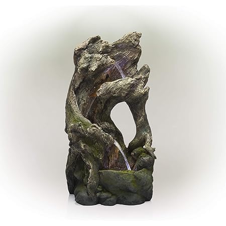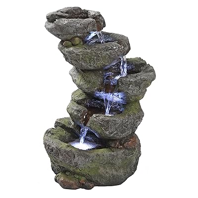 Indoor Outdoor Water Fountain Decor Alpine Corporation Tiered Log Tabletop Fountain With Led Lights Tabletop Fountains Home Decor. 6-Tiers Rocks Outdoor Water Fountain - 40 High Cascading Waterfall with LED Lights Soothing Tranquility for. The first model is a round-shaped solar fountain that includes a water pump a battery backup and 6 bright LED lights. Water trickles from each rock tier to mimic the sounds of a real waterfall adding peaceful ambiance to your outdoor. Interior pump keeps the water flowing just plug it in.