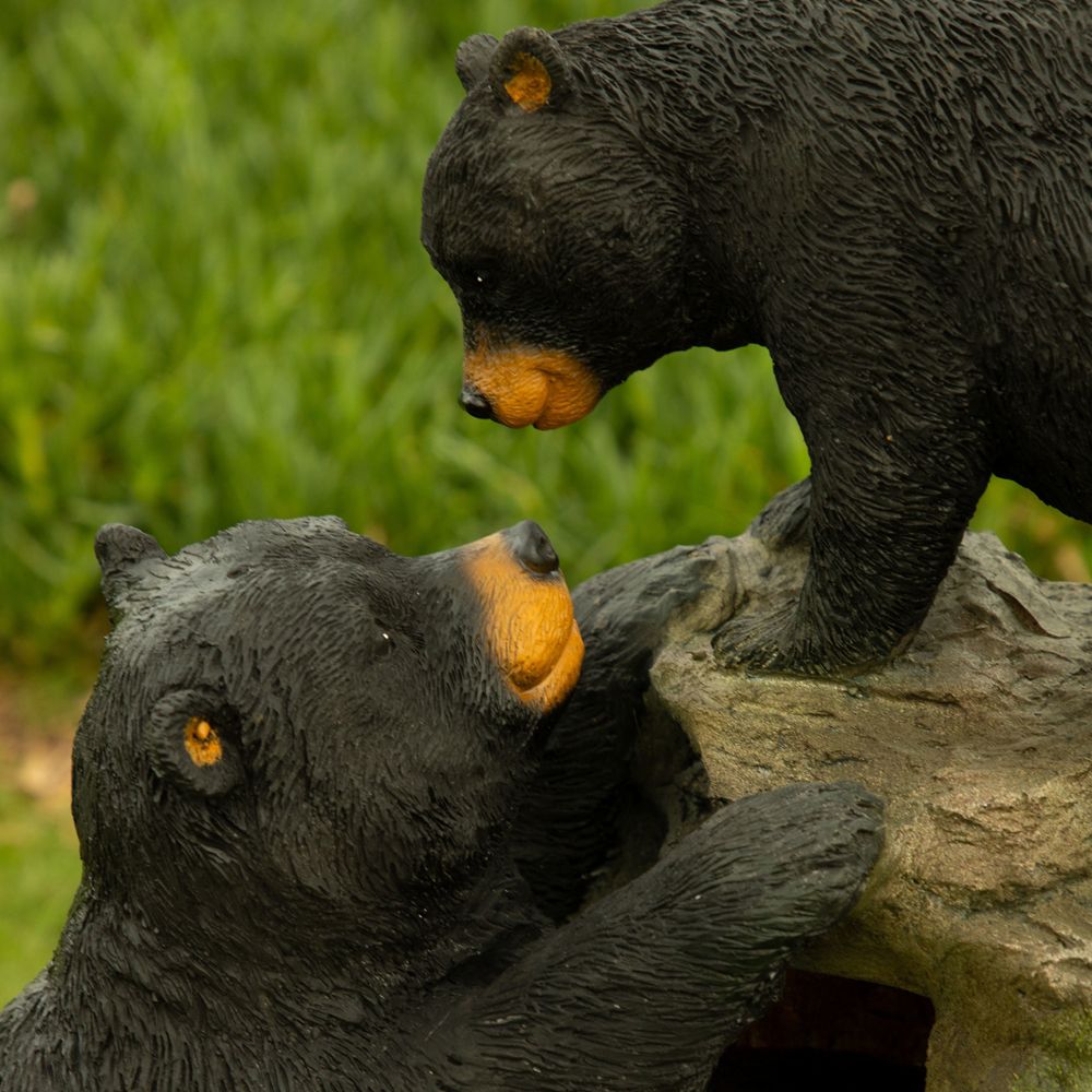 Bear outdoor fountain - Playful Bear And Cub On Mossy Log Pouring Waterfall Outdoor Fountain