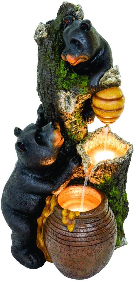 The Bear fountain is adorable and easy to assemble. Bring a bit of the Rocky Mountains to your garden. Constructed from polyresin and. Two bears climbing waterfall fountain with LED lights.
