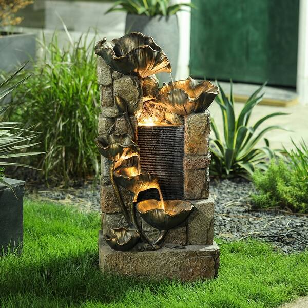 This outdoor waterfall fountain features a peaceful Buddha with water cascading down from the bowl in the Buddhas hands for a tranquil and soothing addition to your porch backyard or lawn. Product Title Peaktop Outdoor Glazed Pot Fountain with LED Light Average rating. Glenville Water Pump Cascading Water Fountain. Naturefalls 5-Tier Outdoor Water Fountains with LED Lights - 39H Floor Standing Indoor Water Fountains for Garden Patio Deck Porch - Yard Art Decor Grey 39H inches 50 out of 5 stars 3 21999 219.