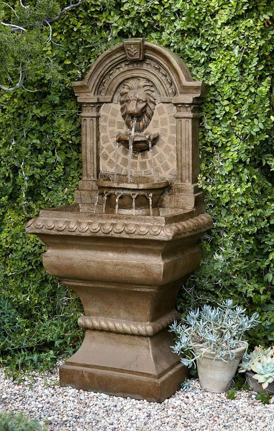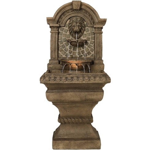 Yma8bu2r3gnmpm. Featuring a timeless design with a natural stone finish and a lion head this wall fountain is a stylish addition to your homes outdoor area. This Item Royal Lions Head Mediterranean Outdoor Wall Water Fountain with Light LED 51 High 3 Tiered for Yard Garden Patio Deck Home - John Timberland. Waterfall with Ancient Stone Frame and Bronze Mirror Garden Fountain. Shop our best selection of 40 - 60 in.