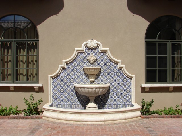 Saved by Suzman Design Associates. The Mediterranean design has perfected the addition of color to the garden. This decorative wall fountain provides a tranquil and soothing addition to your porch patio or backyard. For ultimate effect a wall water fountain made from cast stone is the closest thing youll come to the classic Mediterranean wall fountains most commonly found in Italy Spain and France.