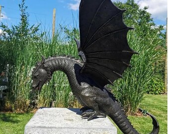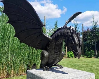 Bronze Dragon Fountain Sculpture Water Feature Statue Avant Garden. It is constructed from durable polyresin material which is designed to mimic the look of stone and brick. 5-6mm can be adjusted depends on the size of sculpture. This material composite is rust and weather-resistant which makes it ideal for outdoor long-lasting use. The dragon can go up to the sky and ride the fog can go to the sea to chase the waves call the wind and rain and is omnipotent so it has a high status in peoples hearts.